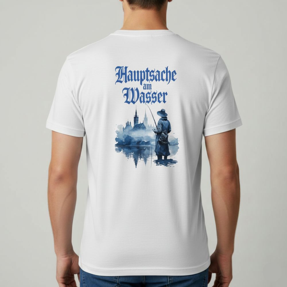 Ein Statement für alle, die lieber am See als am Schreibtisch sind. Das „Hauptsache am Wasser“-T-Shirt bringt deine Haltung klar auf den Punkt – großflächig gedruckt auf dem Rücken. Ideal für Angler, Naturfreunde und Wasserliebhaber mit Stil.